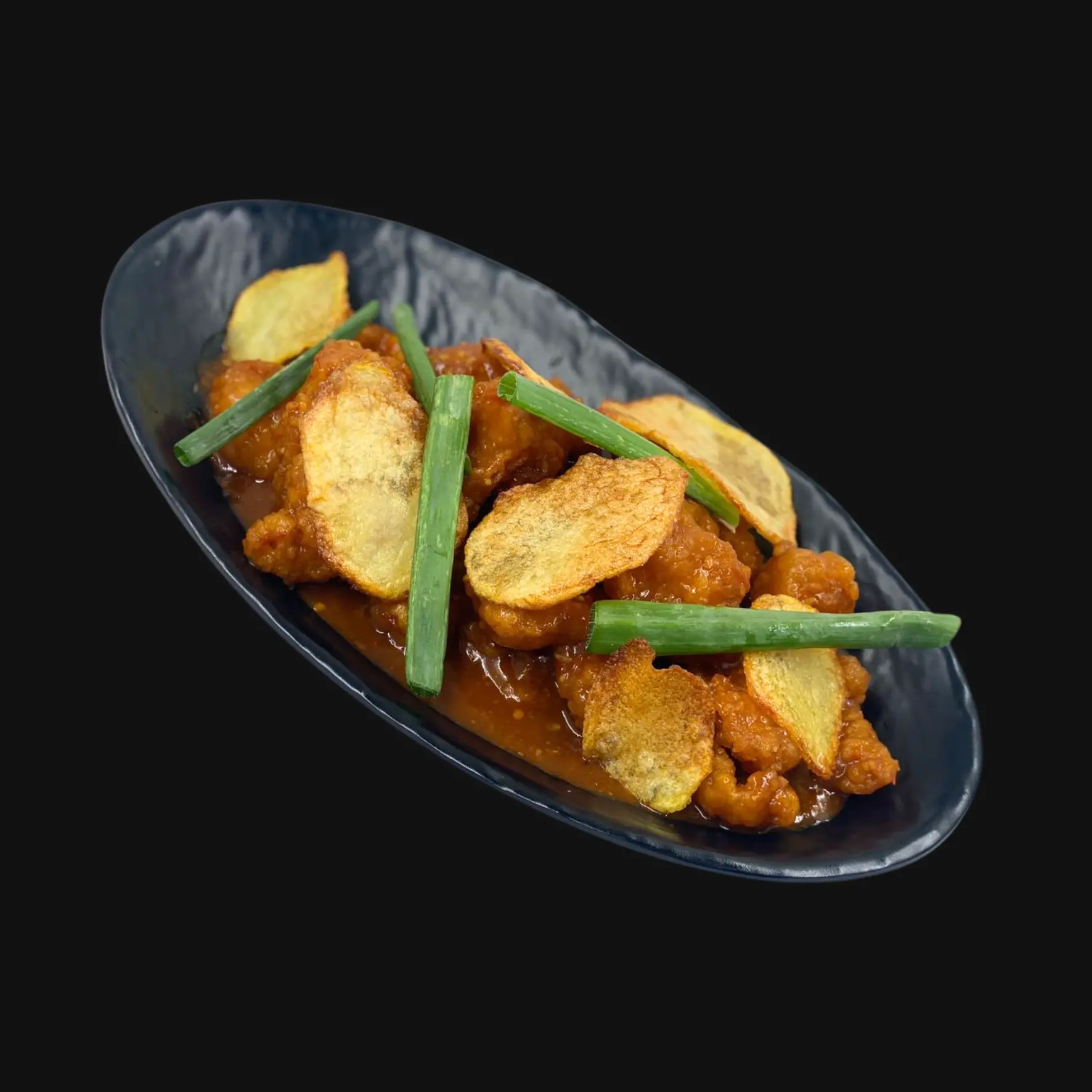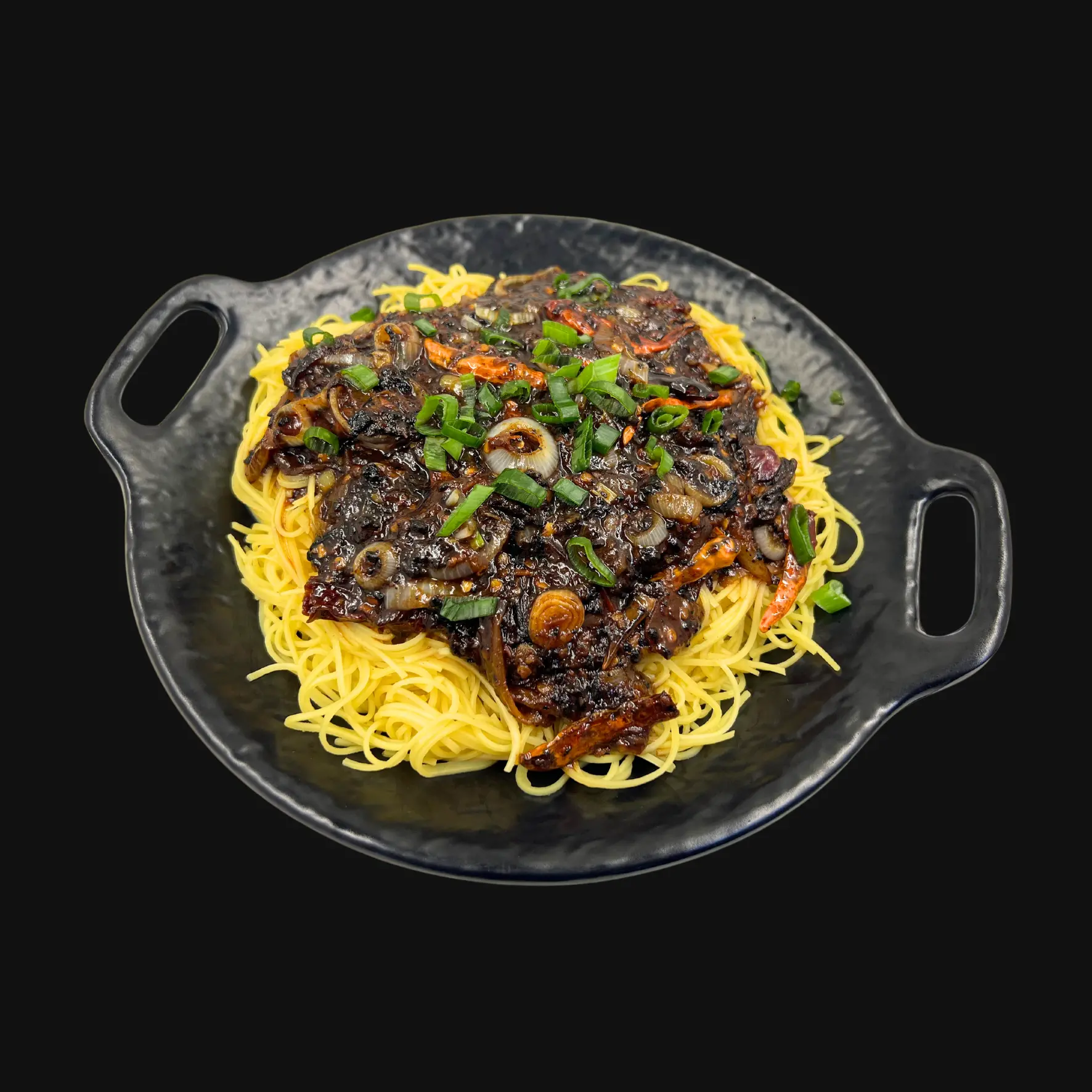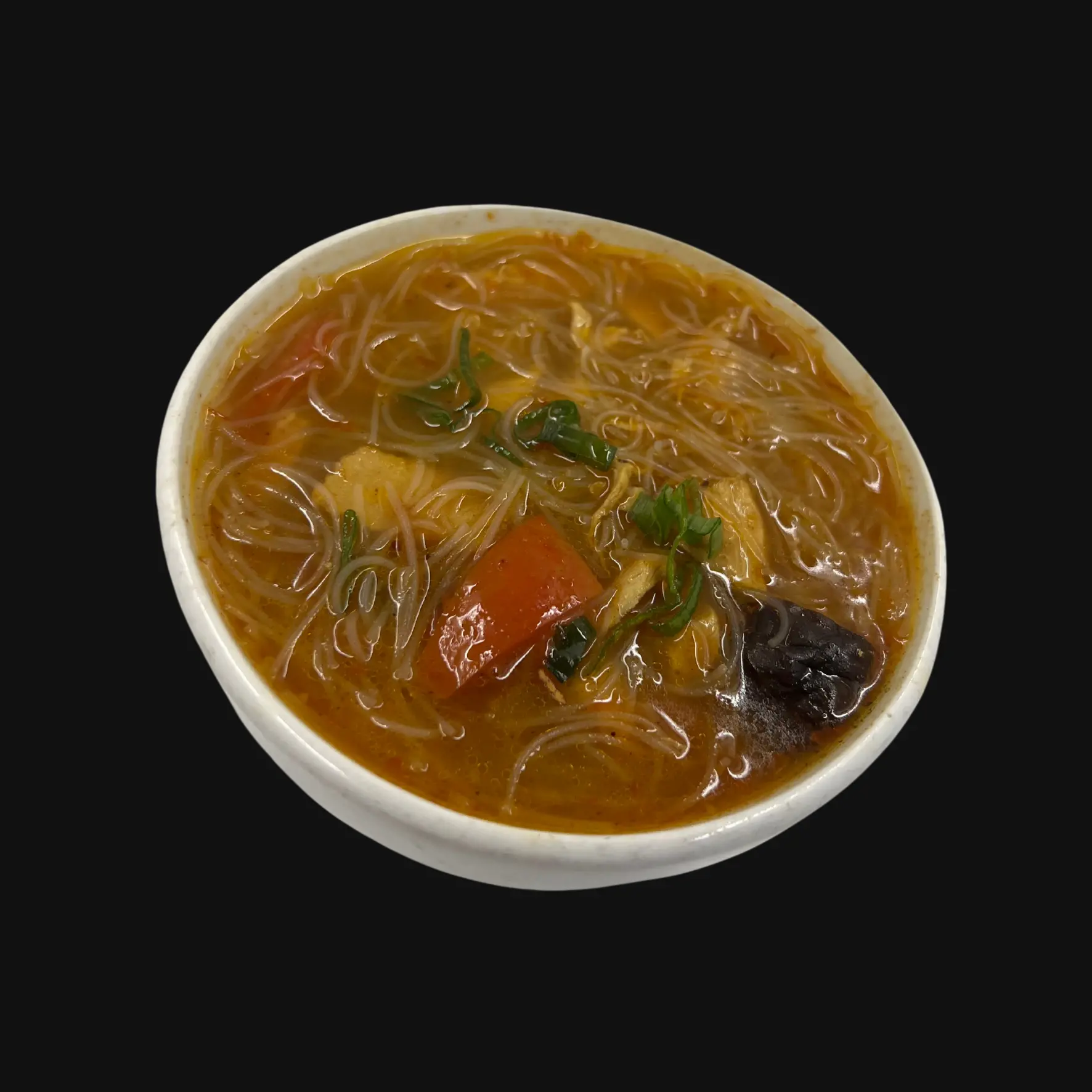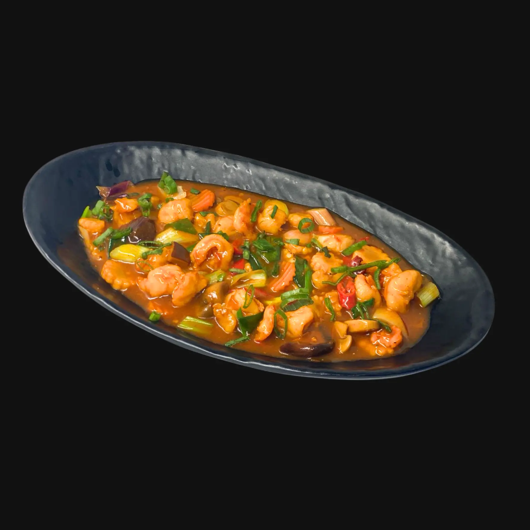 Whole Prawns marinated in Asian flavours, steamed to perfection and served on a bed of rice noodles.