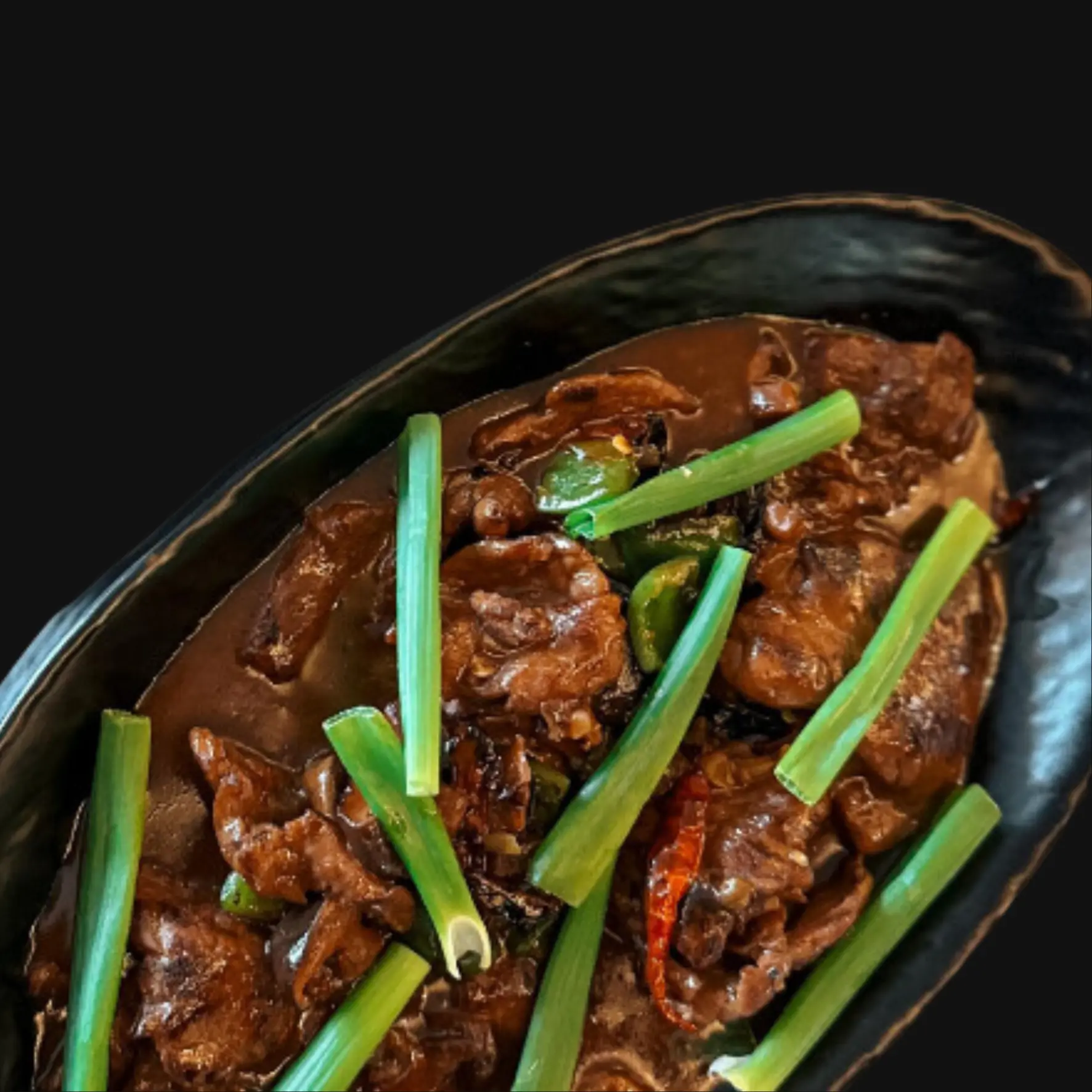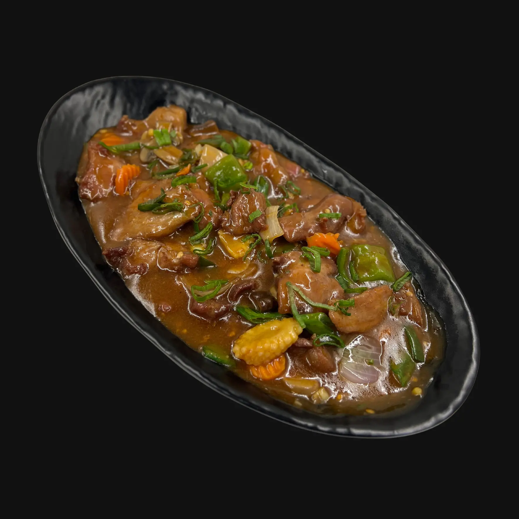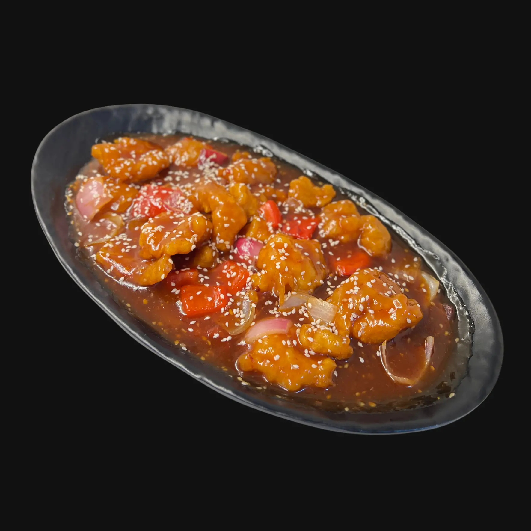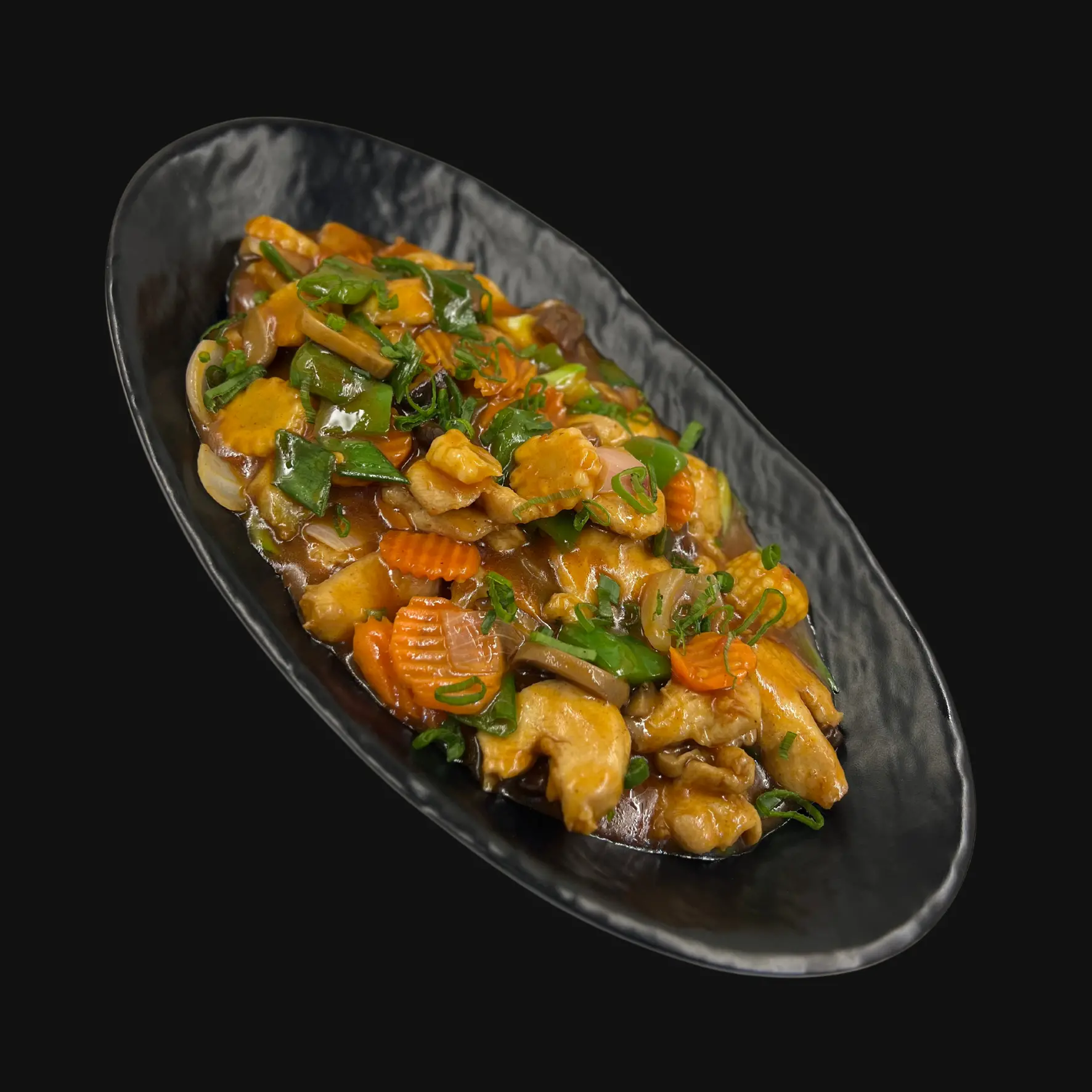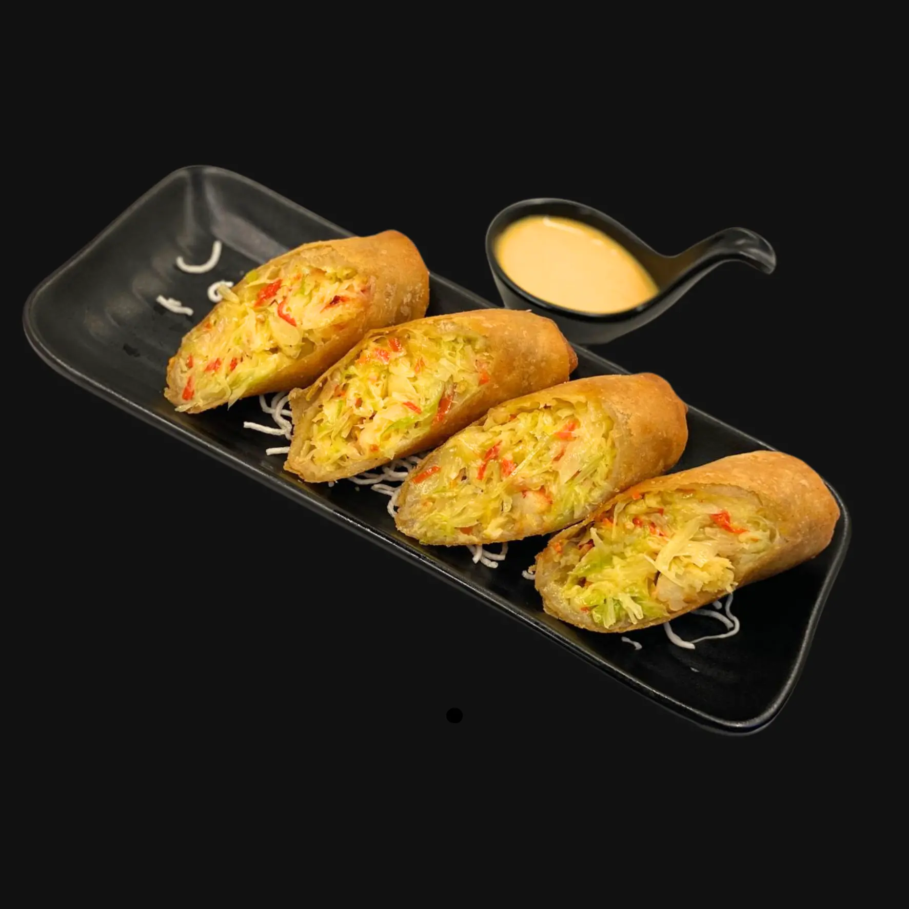 Whole Prawns marinated in Asian flavours, steamed to perfection and served on a bed of rice noodles.